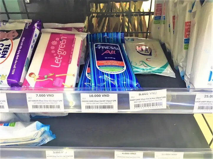 ベトナムのトイレは、時々紙がないこともあります。また、汗を拭いたり、食事の前に手をふくのに、ウェットシートは便利です。何かのついでにコンビニで現地調達すると良いと思います!