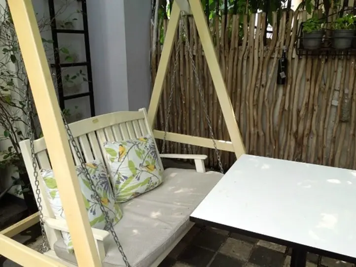 空港近くの住宅街に佇むコロニアル建築のカフェ。西洋の雰囲気が漂い、プチパリ気分を味わうことができます。カップルならブランコシートやソファ席でくつろぐのはいかがでしょうか。昼はランチセットがお得。ドリンクはノンアルコールのモヒートが現地人に人気です。