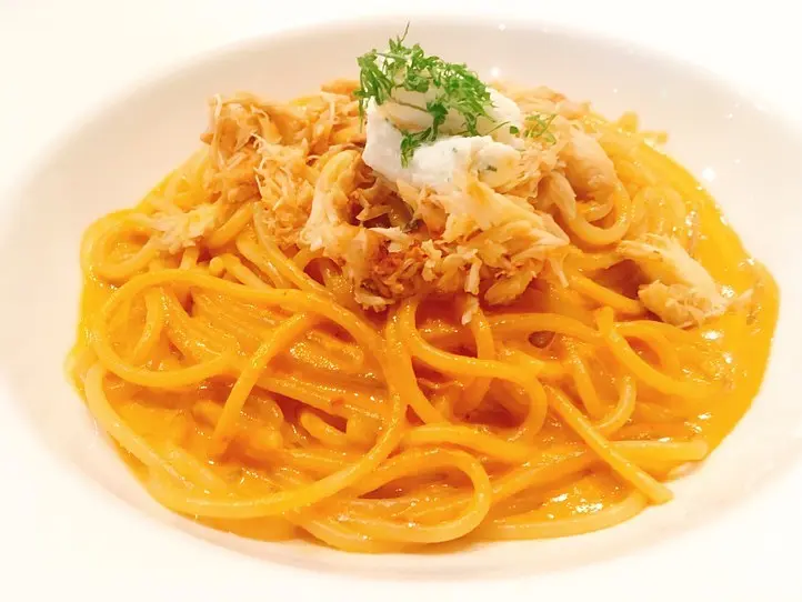 パスタもおいしいそうなので、今回は、パスタメニューの中で一番目立っていた「カニのトマトクリームスパゲティwithリコッタチーズ」(225,000VND、約1,100円)を注文しました。