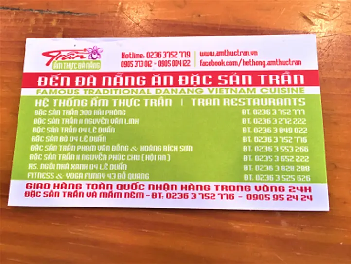 お店の名前は、「Trần」。ハン橋という大きい橋の西側すぐの場所にあります。Lê Duẩnという大通り沿いなのですぐ分かると思います。こちらの看板を探してください。