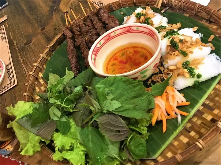 日本から来たお客さんには、バナナの花のサラダがとても好評でした。バナナの花は、現地の人はよく食べる食材ですが、観光客向けのお店であまり見ないメニューなので、このお店で食べられるのは貴重だと思います。そして、ミークワンは、ベトナム人も「今まで食べた中で一番おいしい」というほどのおいしさでした。6人で6皿頼んで、飲み物も注文して1,000,000VND(約5,000円)程度。おなかいっぱい食べたのに思ったより安くてびっくりしました。