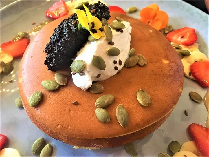 ちなみにこのカフェには「FLUFFY RICOTTA PANCAKE」というふわふわ系のパンケーキもあります。お好みで選んでみてください。(こちらに「FLUFFY RICOTTA PANCAKE」というに写真あり)