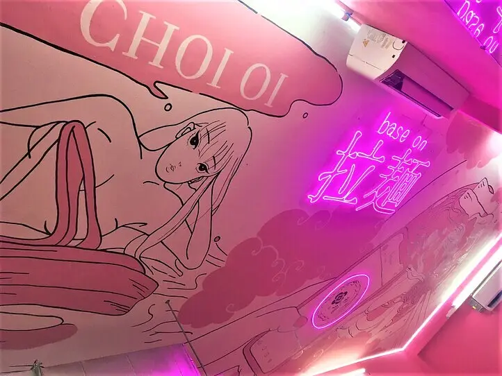 壁には、ヌードルを食べる女の子の絵が書かれています。