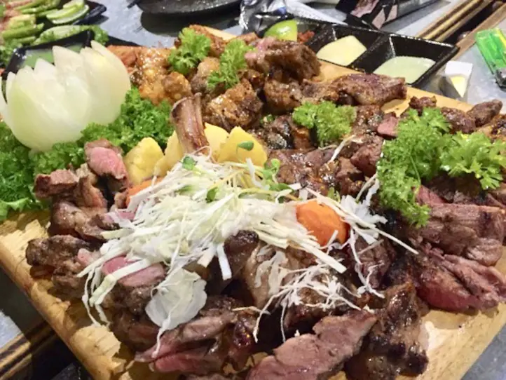 牛肉、豚肉、ラム肉の盛り合わせ。