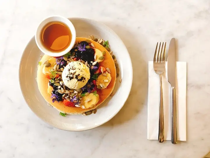 ふわっふわの、感動できるパンケーキです。食べ応えがあるのに柔らかさもあり、重いのか軽いのか、不思議に思いながら何度も口に運んでいるうちになくなってしまいます。はちみつをつけなくてもいいくらい生地自体が完成されているのですが、本当においしいはちみつがついているので、使わないともったいないです笑。