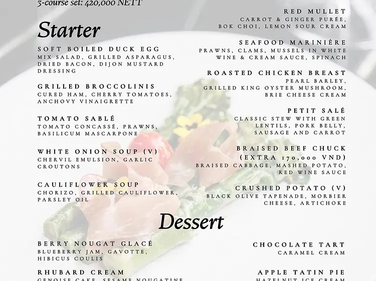 ランチメニューセットSet Menu Lunch2,600円\ '001-1v-2a1 1 0 011-1h2a1 1 0 011 1v2a1 1 0 001 1h2a1 1 0 001-1v-6.586l.293.293a1 1 0 '\ '001.414-1.414l-7-7z'ホーム›レストラン›フランス料理›リュンヌ・レストラン&バー›ランチメニューセット概要詳細ご予約予約するアイテムの概要料金2,600 円(420,000 VND)アイテム内容の説明Set Menu Lunch2 - Couse Set: 310.000 VND (2.000円)3 - Couse Set: 420.000 VND (2.700円)キャンセルポリシーSHAREおすすめコメントを投稿するおすすめ度すごくおすすめ!おすすめいいと思う時間があればおすすめしない料金また利用したい期待以上だった満足したあまり満足しない不満があったロケーションまた利用したい期待以上だった満足したあまり満足しない不満があったサービスまた利用したい期待以上だった満足したあまり満足しない不満があったバリューまた利用したい期待以上だった満足したあまり満足しない不満があった 画像おすすめコメントを投稿するご予約2,600 円(420,000 VND)\ d='M13 16h-1v-4h-1m1-4h.01M21 12a9 9 0 11-18 0 9 9 0 0118 0z'以下の情報を入力して、送信ボタンを押してください。予約内容がメール送信され、予約完了後、お客様のメールアドレスに予約完了のお知らせが送信されます。店舗リュンヌ・レストラン&バー商品(コース)ランチメニューセット料金(1名あたり)2,600 円420,000 VNDお客様情報お名前*パスポートに記載の氏名(ローマ字)メール*電話番号*人数予約日時翌日分のご予約は日本時間15時まで承っております。予約日時候補1×その他メッセージ 時間指定など、その他要望があれば記入ください。