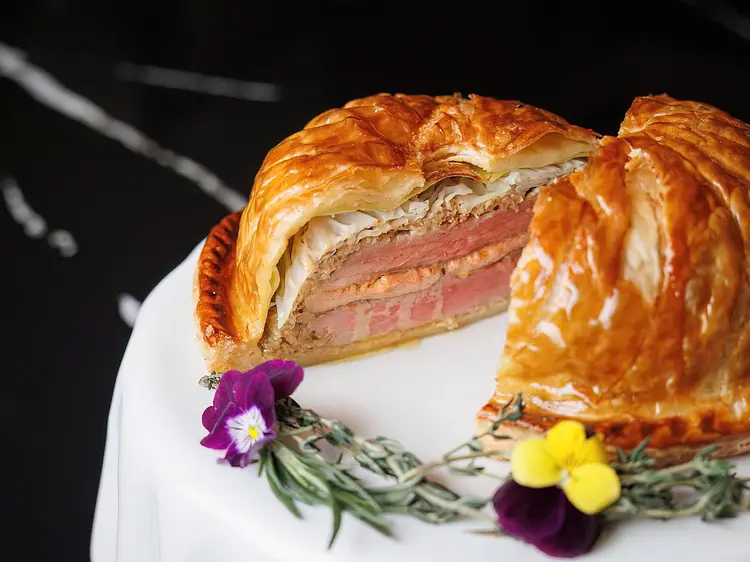 香ばしく焼き上げた鴨の胸肉とレバーを使用したパイに、肉厚なエリンギ、じっくり煮込んだキャベツを添えています。さらに、トリュフ風味のジュソースが料理全体を引き立て、贅沢な味わいをお楽しみいただけます。