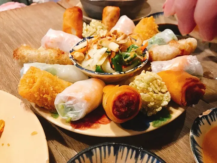 生春巻きや揚げ春巻きなど1皿で様々な春巻きを楽しむことができます。