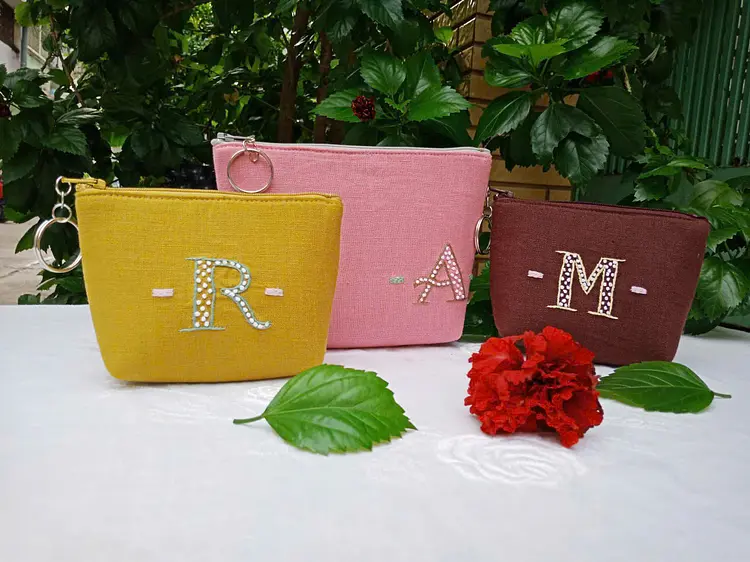 ハンドメイド・イニシャルリネンポーチ