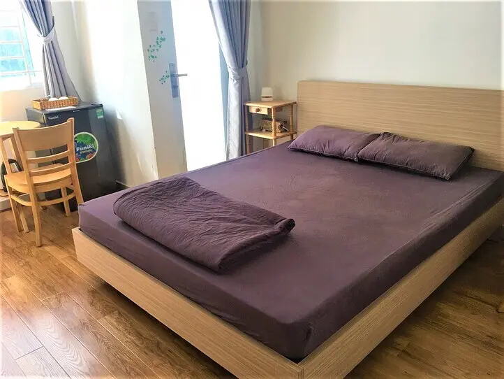 ベッド2つを端に寄せるとかなり広いです。ダブルの方が500,000VND高いですが、断然こちらのほうがおすすめ。私は猫を部屋飼いしているので、なるべく広い部屋で自由に遊ばせたいと思っていたので、この広さはありがたかったです。