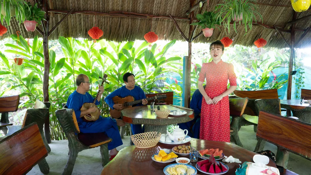 メコンデルタは、ベトナム音楽の中でも特異な地位を占める地域です。その伝統音楽であるドンカイ(Đờn ca tài tử)は、情緒的な詩を語り、日常生活の喜びや悲しみを表現します。この音楽は即興性が強く、優雅で繊細な旋律が特徴で、深みと感動を与えます。主に使われる楽器は、二弦楽器であるダンキム(đàn kìm)、十七弦の筝であるダンチュン(đàn tranh)、竹製のフルートであるサオ(sáo)、そして単弦楽器のダンバウ(đàn bầu)などです。これらの楽器が組み合わさることで、ドンカイの独特な音楽風景が生まれます。親しみやすく、心に響くメコンデルタの伝統音楽は、ベトナム文化の深い部分を表しています。