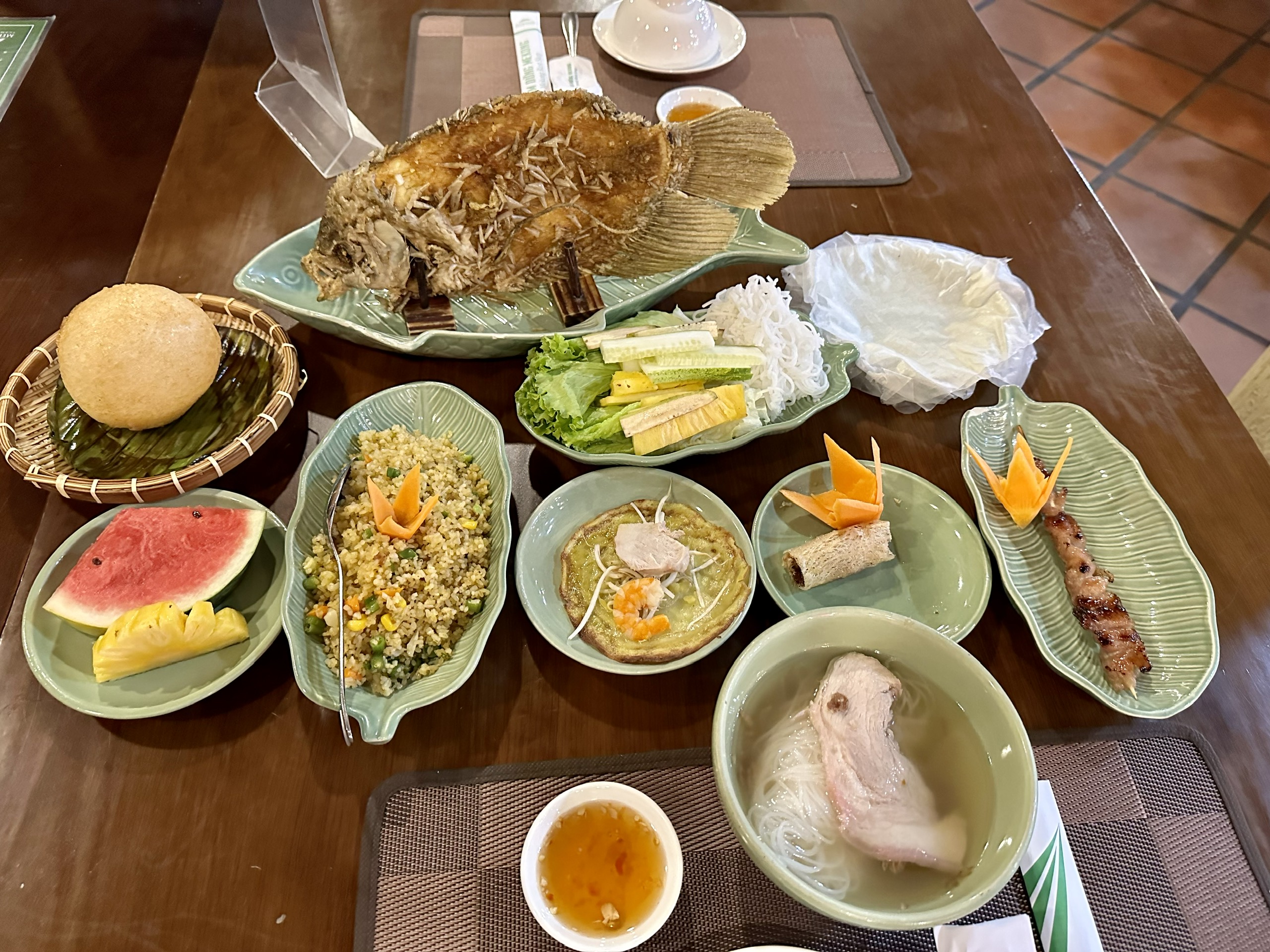 - 昼食は現地の料理(象耳魚、春巻きなど)